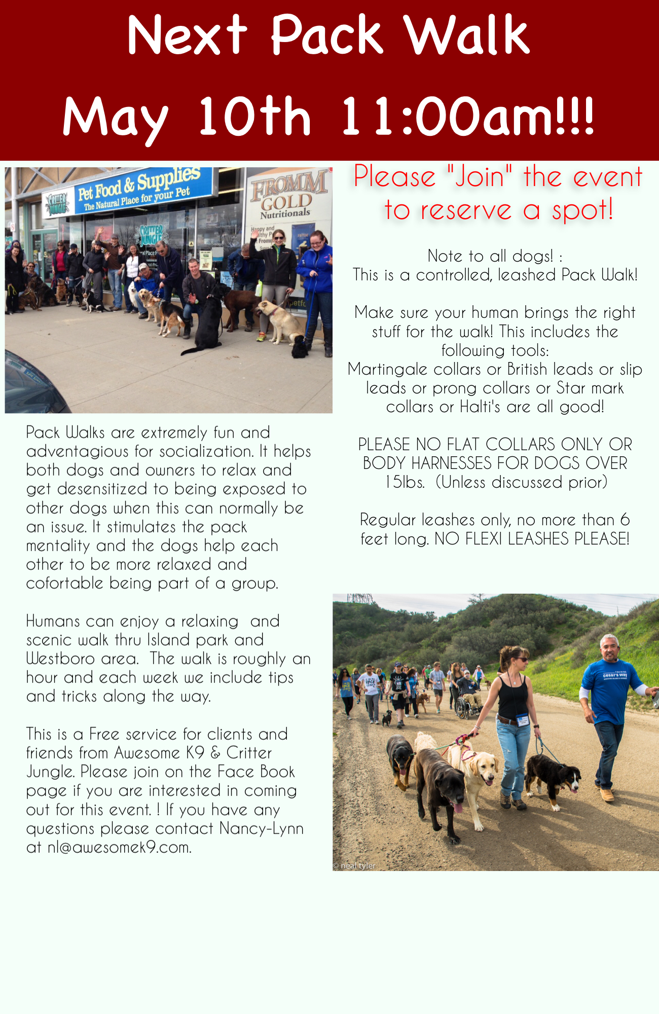 COME JOIN US! FOR A FREE PACK WALK!!! see details:
